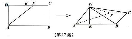 (17)如图,在长方形ABCD中,AB=2,BC=1,E为DC的中点,F为线段EC(端点除外)上一动点,现将