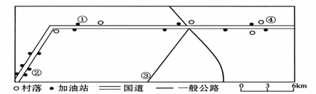 随着经济的迅速发展,小汽车越来越多地进入家庭,目前我国已是世界第三大汽车消费国。下图为某区域国道上加油站的分布图。分析回答5-7题。