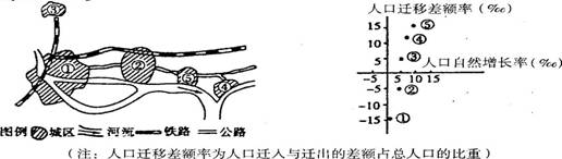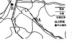 下图中A城为以机电、轻纺、食品工业为主的H市的卫星城。读图完成10-11题。