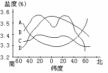 10.下图四条曲线中正确表示海洋表面平均盐度按纬度分布的曲线是( )