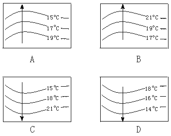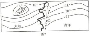 图为“某地等温线图”(图中粗曲线为海岸线).据此回答16--17题.