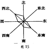 图15为“某城镇多年平均风频图”,读图回答32-33题。