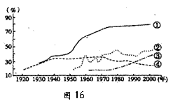工业化率是工业增加值占全部生产总值的比重,城市化率为城镇常住人口占总人口的比重。图16是中国和日本的工业化率与城市化率变化曲线,读图回答35题。