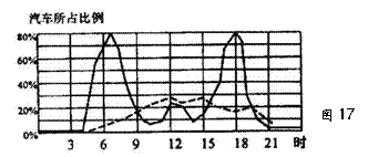 下图(图17)为西方某国统计的交通工具运行目的比例示意图,回答36-37题