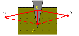 学生回答:刀刃的夹角越小,则F1、F2越大。