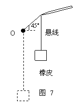 10、如图7所示一块橡皮用细线悬挂于O点,用铅笔靠着线的左侧向右上方45°方向匀速移动,运动中始终保持悬线竖直,则橡皮运动的速度: