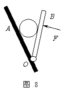 11、如图8所示,小球放在光滑的板AO与装有铰链的光滑轻质薄板BO之间,F始终垂直于薄板。当薄板OB由当前位置缓慢转至水平的过程中,下列说法正确的是: