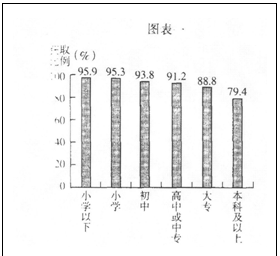 [解析]要把握住每个图表的主体特点和不同发展趋势,如图表一主体是不同学历的人,趋势是“学历越低的群体通过电视科普节目获取的科技信息比例越高”, 图表二的主体是不同职业的人,特点是“不同职业的群体通过电视科普节目获取的科技信息比例也有差异”。