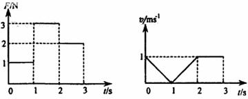 一滑块在水平地面上沿直线滑行,t=0时其速度为1 m/s。从此刻开始滑块运动方向上再施加一水平作用力F,力F和滑块的速度v随时间t的变化规律分别如图所示。设在第1秒内、第2秒内、第3秒内,力F对滑块做功的大小分别为
