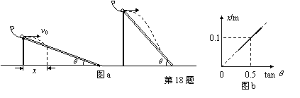 (6分)如图a是研究小球在斜面上平抛运动的实验装置,每次将小球从弧型轨道同一位置静止释放,并逐渐改变斜面与水平地面之间的夹角θ,获得不同的射程x,最后作出了如图b所示的x-tanθ图象,则: