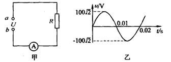8.在如图甲所示的电路中,电阻R的阻值为50Ω,在ab间加上图乙所示的正弦交流电,则下面说法中正确的是 ( )