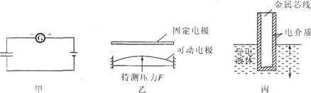 8.传感器是把非电学量转换成电学量的一种元件.如图所示,乙、丙是两种常见的电容式传感器,现将乙、丙两种传感器分别接到图甲的电路中进行实验(电流从电流表正接线柱流入时指针向右偏),下列实验现象中正确的是