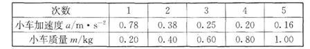 (2)在“探究加度与质量的关系”时,保持砝码和小桶质量不变,改变小车质量m,分别得到小车加速度a与质量m数据如下表: