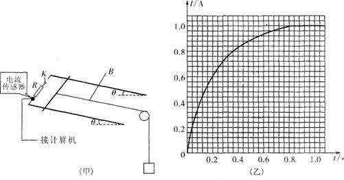 .实验时,先断开K,取下细线调节轨道倾角,使杆恰好能沿轨道匀速下滑.然后固定轨道,闭合K,在导轨区域加一垂直轨道平面向下的匀强磁场,让杆在悬挂物M的牵引下,从图示位置由静止开始释放,此时计算机屏幕上显示出如图(乙)所示的
