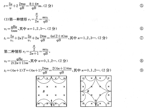 (3)若粒子在磁场中运动的半径小于a且仍能从A孔垂直边界射出,粒子射入的速度应为多大?在磁场中的运动时问是多长?