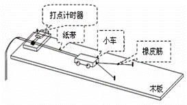 (12分)某学习小组做探究“合力的功和物体速度变化关系” 的实验如图,图中小车是在一条橡皮筋作用下弹出,沿木板滑行,这时,橡皮筋对小车做的功记为W. 当用2条、3条……,完全相同的橡皮筋并在一起进行第2次、第3次……实验时,使每次实验中橡皮筋伸长的长度都保持一致。每次实验中小车获得的速度由打点计时器所打的纸带测出。