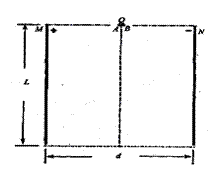 (15分)如图所示,带等量异种电荷的两平行金属板竖直放置(M板带正电,N板带负电),板间距为d=80cm,板长为L,板间电压为U=100V。两极板上边缘连线的中点处有一用水平轻质绝缘细线拴接的完全相同的小球A和B组成的装置Q,Q处于静止状态,该装置中两球之间有一处于压缩状态的绝缘轻质小弹簧(球与弹簧不拴接),左边A球带正电,电荷量为q=4×10-5C,右边B球不带电,两球质量均为m=1.0×10-3kg.某时刻,装置Q中细线突然断裂,A、B两球立即同时获得大小相等、方向相反的速度(弹簧恢复原长)。若A、B之间弹簧被压缩时所具有的弹性能为1.0×10-3J,小球A、B均可视为质点,Q装置中弹簧的长度不计,小球带电不影响板间的匀强电场,不计空气阻力,取g=10m/s2。求: