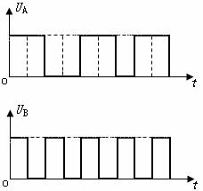 6.下图左端表示输入端A、B的电势随时间变化的关系。如果它们是“与”门的输入端,请在方框中画出输出端的电势随时间变化的关系。