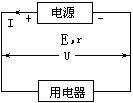 对于一个闭合电路,它的能量应该是守恒的,但又在不同形式间转化,通过做功方式完成。在电源部分,非静电力做正功W非=qE,将其它形式的能转化成电能。而内阻上电流做功,将电能转化成内能W内=qU′(U′为内阻上的电势降);在外电路部分,电流做功W外=qU(U为路端电压),电能转化成其它形式的能。可见,整个电路中的能量循环转化,电源产生多少电能,电路就消耗多少,收支平衡。即:W非=W内+W外或qE=qU′+qU