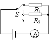 [例题17]如图,电源的内阻不可忽略。已知定值电阻R1=10Ω,R2=8Ω。当电键S接位置1时,电流表的示数为0.20A。那么当电键S接位置2时,电流表的示数可能是下列哪些值