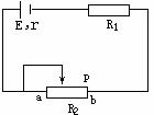 [例题18]如图所示的直流电路中,电源电动势为E,内阻为r,外电路中,电阻R1=r,滑动变阻器的全部电阻为R2=2r,滑动片从a端向b端滑动过程中,哪种说法正确
