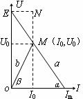 右图中a为电源的U-I图象;b为外电阻的U-I图象;两者的交点坐标表示该电阻接入电路时电路的总电流和路端电压;该点和原点之间的矩形的面积表示输出功率;a的斜率的绝对值表示内阻大小; b的斜率的绝对值表示外电阻的大小;当两个斜率相等时(即内、外电阻相等时图中矩形面积最大,即输出功率最大(可以看出当时路端电压是电动势的一半,电流是最大电流的一半)。