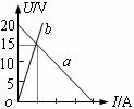 [例题20]如图所示,图线a是某一蓄电池组的伏安特性曲线,图线b是一只某种型号的定值电阻的伏安特性曲线。若已知该蓄电池组的内阻为2.0Ω,则这只定值电阻的阻值为______Ω。现有4只这种规格的定值电阻,可任意选取其中的若干只进行组合,作为该蓄电池组的外电路,则所组成的这些外电路中,输出功率最大时是_______W。