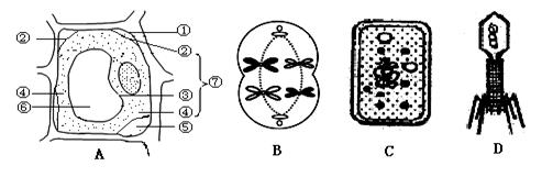 (1)上述各图结构中共有的物质有 。A、B、C共有的细胞器是 。
