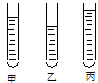 质量相等的酒精,硫酸和水,分别装在规格相同的三个试管中,如图所示,试管甲装的是________,试管乙装的是___________。试管丙装的是___________(