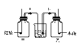 如右图所示:甲、乙两个集气瓶中都充满了空气, a和b为两个止水夹,燃烧匙内分别放有足量的红磷和木炭,经检验甲、乙两个集气瓶气密性良好。然后分别点燃红磷和木炭,充分燃烧后,待集气瓶恢复至室温,同时打开止水夹a和b,水可能进入哪个集气瓶?简述理由。