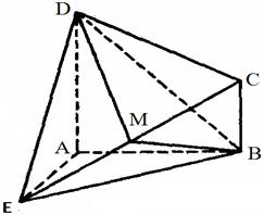 如图所示的几何体ABCDE中,DA⊥平面EAB,CB//DA,EA=DA=AB=2CB,EA⊥AB,M 是EC的中点。