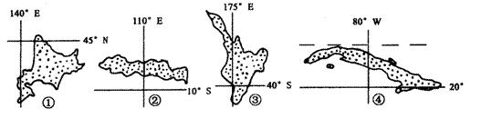 下图是四个国家示意图,回答1-3题。