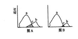 下图所示为共同生活在一起的两个种群,P种群主要以a为食,Q种群主要以b为食,它们所吃的食物有些是共同的,以c表示(图B表示图A经过自然选择形成的结果)。下列关于种群的描述不正确的是
