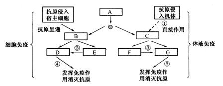 (8分) 下图是人体特异性免疫的过程示意图(序号表示过程,字母表示细胞),请回答: