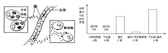 Ⅱ.为研究促甲状腺激素(TSH)分泌的影响因素,研究者从刚宰杀的大白鼠体内分离新鲜的下丘脑和脑垂体。然后把这些结构单独或一起培养于含有或不含有甲状腺激素的培养基中,培养后测定培养基内TSH的浓度,结果如下: (1)在上述实验中设置A瓶的目的是 ▲ 。说明了培养基及培养过程不会产生TSH。