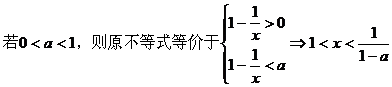 分析:解对数不等式时,需要利用对数函数的单调性,把不等式转化为不含对数符号的不等式。而对数函数的单调性因底数a的取值不同而不同,故需对a进行分类讨论。![]()