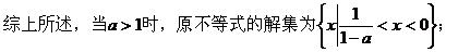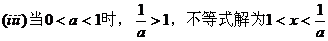 分析:这是一个含参数a的不等式,一定是二次不等式吗?不一定,故首先对二次项系数a分类:(1)a≠0(2)a=0,对于(2),不等式易解;对于(1),又需再次分类:a>0或a<0,因为这两种情形下,不等式解集形式是不同的;不等式的解是在两根之外,还是在两根之间。而确定这一点之后,又会遇到1与