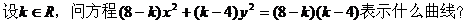 (i)当k<4时,方程表示双曲线;(ii)当4<k<6时,方程表示椭圆;![]()
