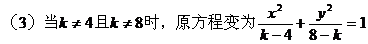 (iii)当k=6时,方程表示圆;(iv)当6<k<8时,方程表示椭圆;![]()