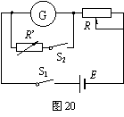 (1)采用如图20所示电路测量表头的内阻,为提高测量精确度,选用的滑动变阻器为 ;选用的电池为 。