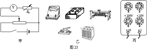(3)若在步骤D中读出R0的阻值为图23丙所示位置,则电压表的电阻为 Ω。用这种方法测出的电压表内阻与真实值相比偏 (填大或小)。