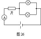 (2)如图26所示,将同种规格的两个这样的小灯泡并联后再与10Ω的定值电阻串联,接在电压恒定的8V的电源上,则电流表的示数为 A,小灯泡的电阻为 Ω。