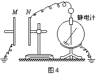 2.如图5所示,由两块相互靠近的平行金属板组成的平行板电容器的极板N与静电计相接,极板M接地。用静电计测量平行板电容器两极板间的电势差U。在两板相距一定距离d时,给电容器充电,静电计指针张开一定角度。在整个实验过程中,保持电容器所带电量Q不变,下面哪些操作将使静电计指针张角变小( )