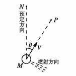 假设总质量为M的卫星,正在以速度V沿MP方向运动,已知现在的运动方向与预定方向MN成θ角,如图2所示。为了使飞船回到预定的飞行方向MN,飞船启用推进器进行调整。
