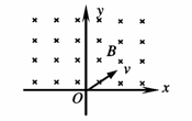 (8分)如图所示,在x轴的上方(y>0的空间内)存在着垂直于纸面向里、磁感应强度为B的匀强磁场,一个不计重力的带正电粒子从坐标原点O处以速度v进入磁场,粒子进入磁场时的速度方向垂直于磁场且与x轴正方向成45°角,若粒子的质量为m,电量为q,求: