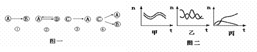 图一中A、B、C、D代表四种生物,箭头表示生物之间的关系或能量流动的方向;图二中的曲线表示两种生物之间的关系。图二中不能够反映图一所示生物之间关系的是