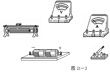 (2)图21-2给出了做实验所需要的各种仪器。请你按电路图把它们连成实验电路。