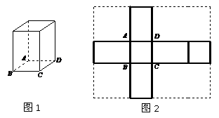 图2中实线围成的部分是长方体(图1)的平面展开图,其中四边形ABCD是边长为1的正方形.若向虚线围成的矩形内任意抛掷一质点,它落在长方体的平面展开图内的概率是