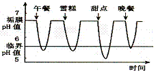 牙齿表面的垢膜含有大量的细菌,下图的曲线图表示某儿童的牙齿垢面pH值在一段时间内的变化,当pH低于临界pH值时,便可能引起蛀牙,下列解释合理的是