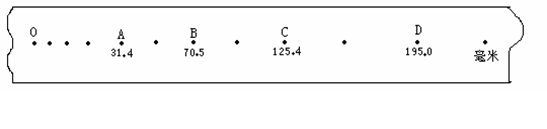 ⒋ 某次“验证机械能守恒定律”的实验中,用6V、50Hz的打点计时器打出的一条无漏点的纸带,如图所示,O点为重锤下落的起点,选取的计数点为A、B、C、D,各计数点到O点的长度已在图上标出,单位为毫米,重力加速度取9.8m/s2,若重锤质量为1kg。